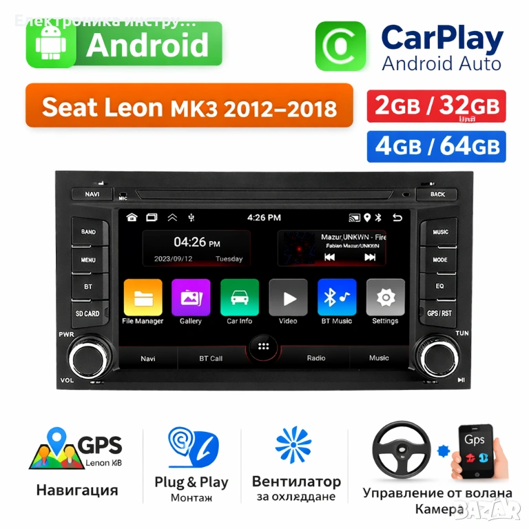 Android навигация за Seat Leon MK3 (2012–2018) – CarPlay, Android Auto, Plug & Play