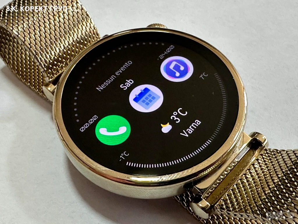 Часовника е в отлично състояние, без драскотини по екрана. Продава се единствено със зарядно към него ( без кутия и без гаранция ).