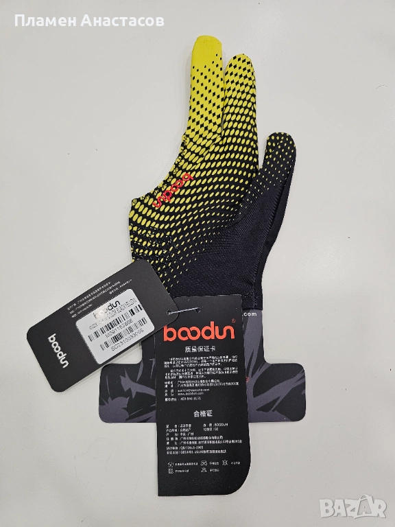 Boodun Billiard Cue Glove е удобна и практична ръкавица за билярд, предназначена да подобри контрола и плавното движение на щеката по време на игра. Тя намалява триенето между ръката и щеката, което осигурява по-точни удари и по-добра стабилност.