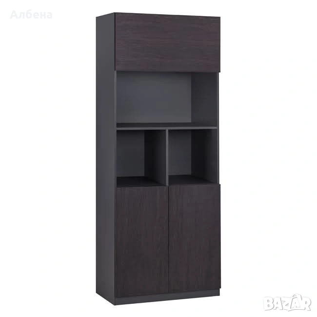 Стилна и практична офис библиотека, подходяща за дома или работното пространство. Съчетава функционалност и модерен дизайн, осигурявайки удобно място за книги, енциклопедии и декоративни елементи.