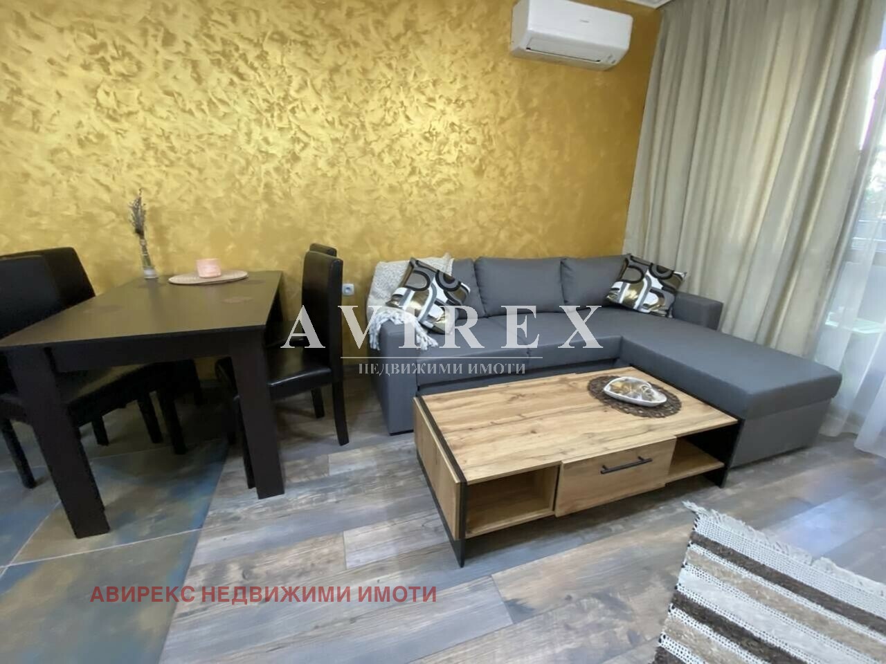 Апартаментът е напълно обзаведен, включително с всички необходими детайли за едно домакинство посуда, прахосмукачка и ютия.