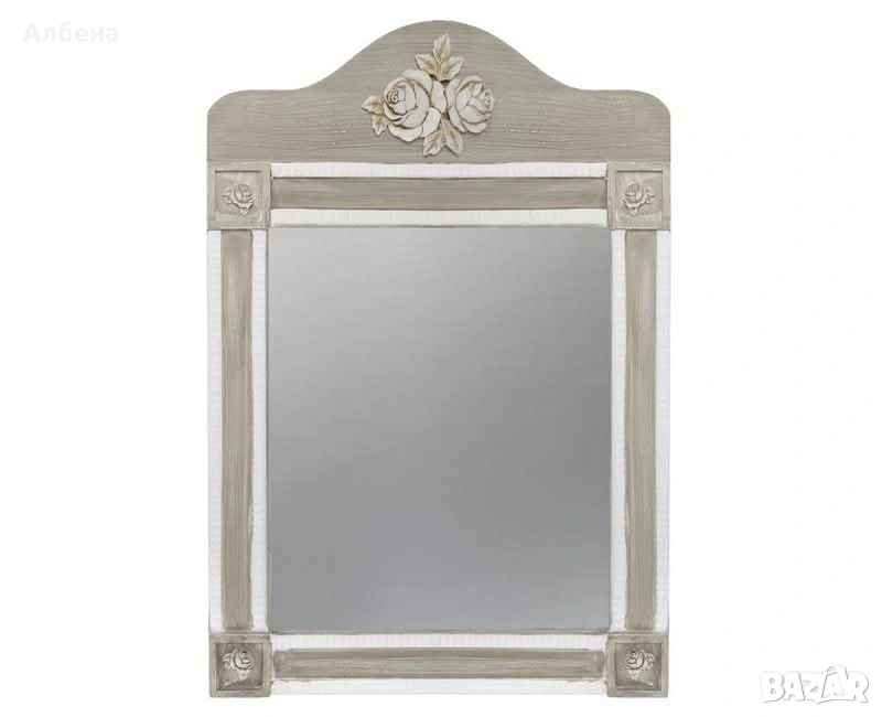 Стилно и практично огледало, което ще бъде красив акцент във вашата баня, спалня, хол или коридор. Дървената рамка с украшение придава елегантност и топлина на интериора.