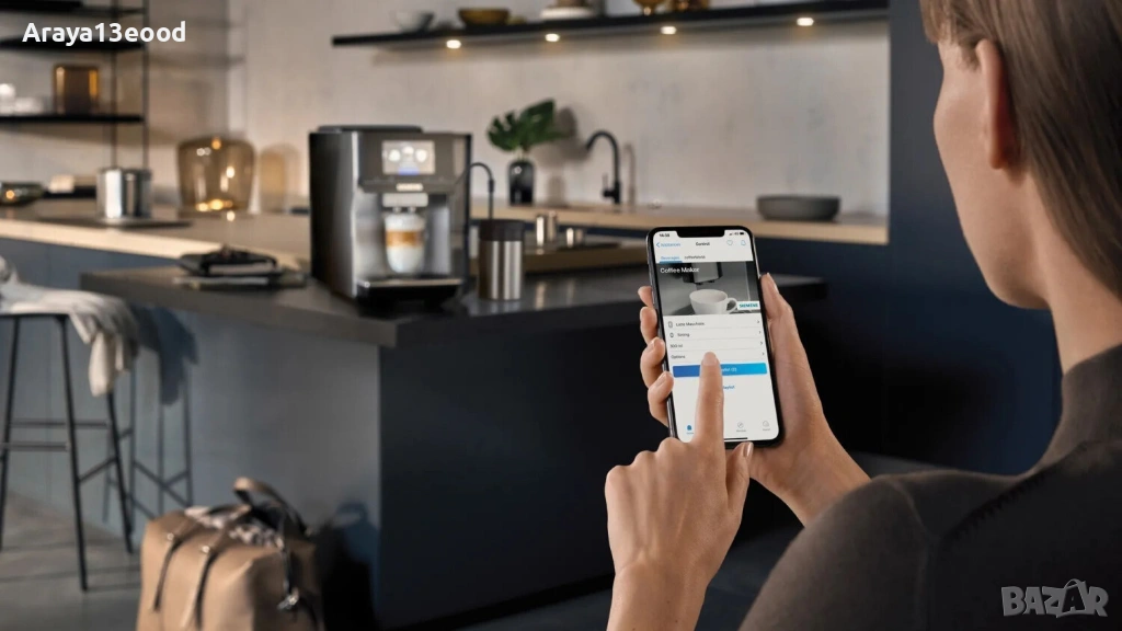 С интеграцията на Home Connect, кафемашината може да се управлява дистанционно чрез смартфон, което добавя още повече удобство и контрол.