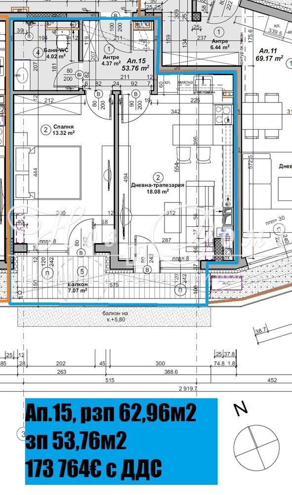 Общата площ е 62,96м2, а застроената е цели 53,76м2. Статут 'Апартамент'! Имотът може да бъде закупен с кредит от банка, в случай на желание от финансиране с ипотечен/жилищен кредит! Сградата и имота ще се отопляват на газ или електричество - по желание на клиента. Очаквано въвеждане в експлоатация/Акт 16 е до края на 2028 година, като е предвиден Технически паспорт/енергиен сертификат!