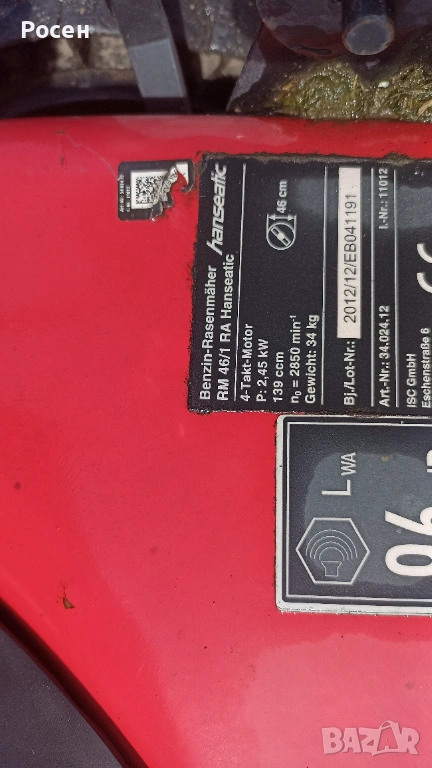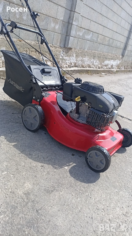 Продавам бензинова четиритактова самоходна косачка Hanseatic с кош, с 9 степени за ниво автоматично,широчина на косене-46 см.Внос от Германия.