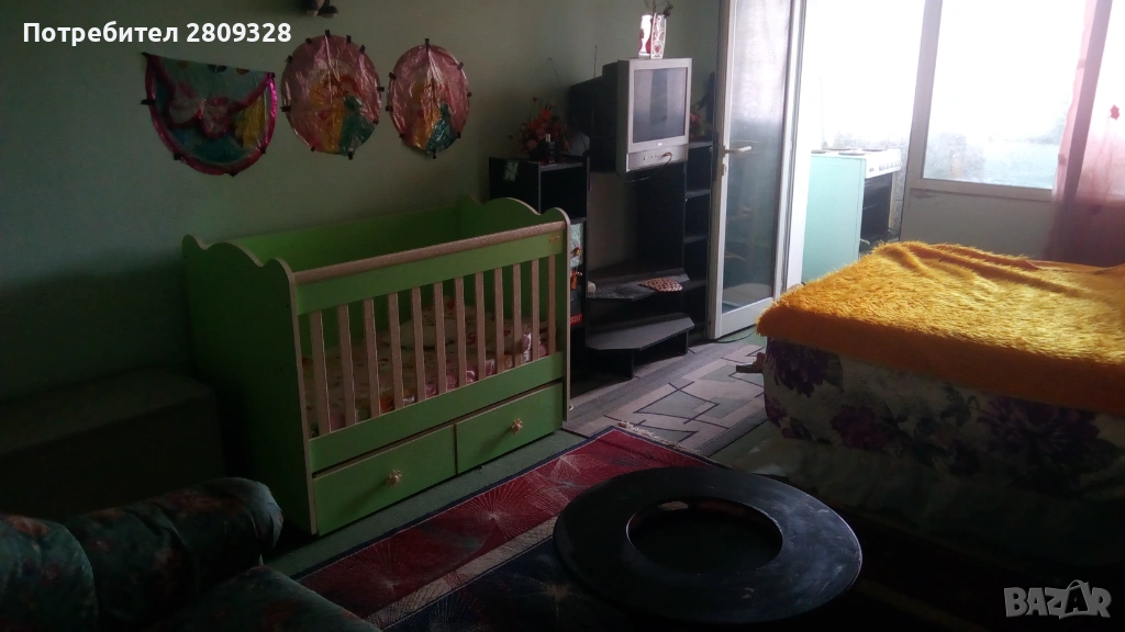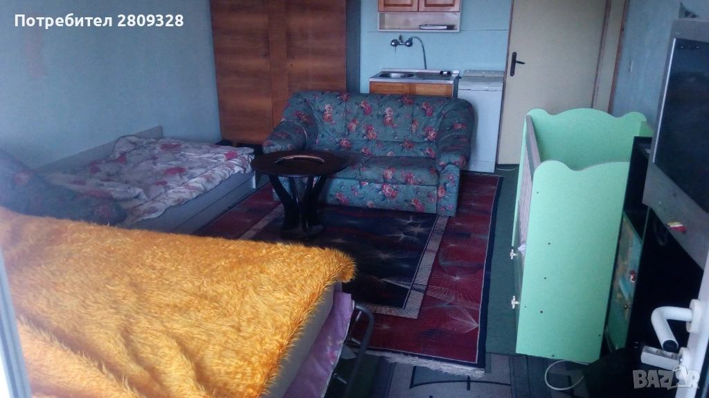 Легло за 2 и легло за един, гардероб, шкаф, пералня, мивка, детско легло, баня, маса, два стола, готварска печка, прахосмукачка, тв.. високоскоростен интернет!