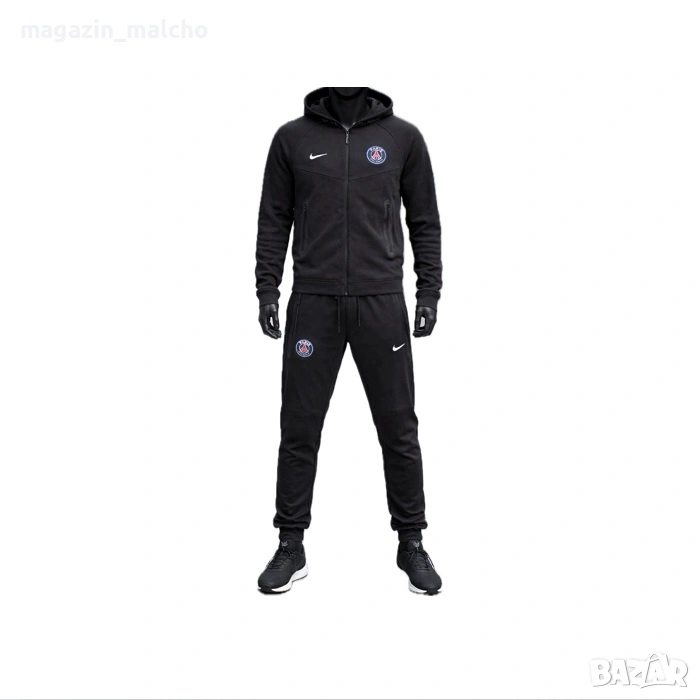 Мъжки футболен анцуг в черен цвят носещ емблемата на FC PSG. Осигурете си удобствo и комфорт в ежедневието, спорта или фитнеса с анцуг Nike Tech Fleece на любимият отбор - FC PSG.