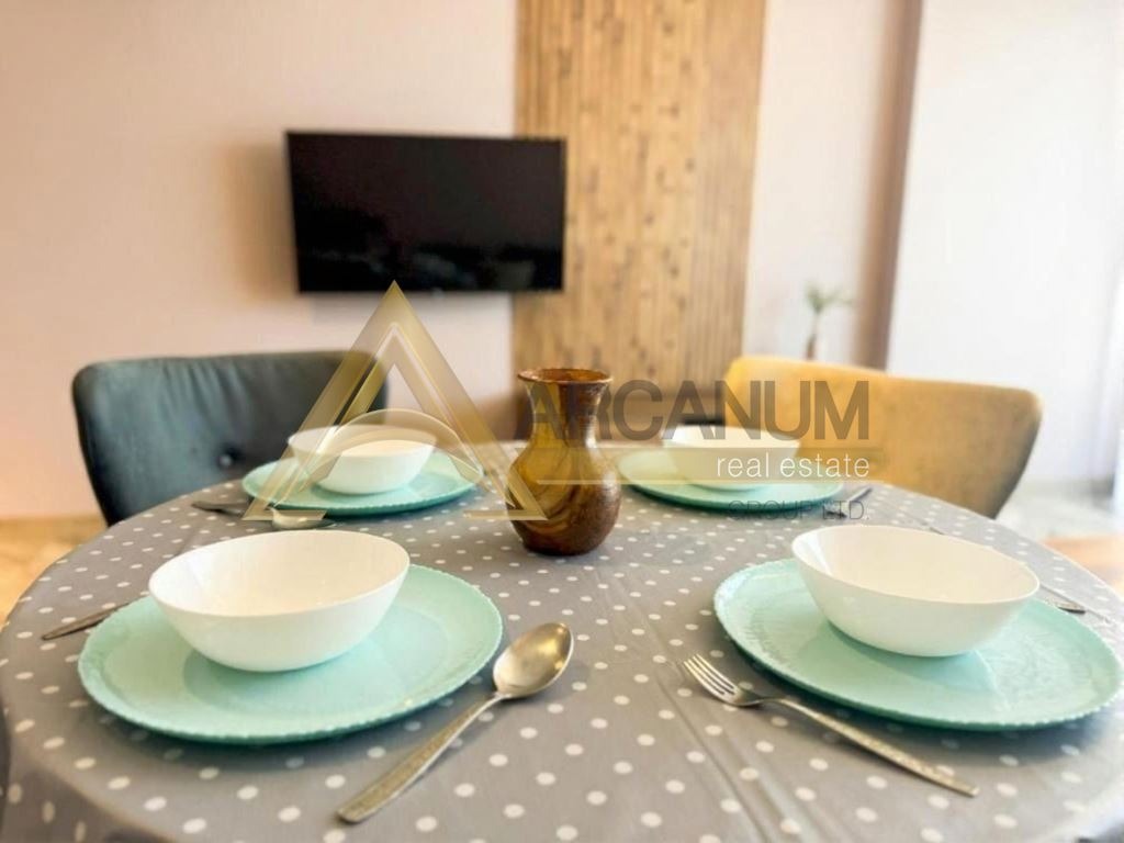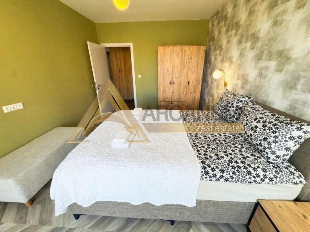 Разпределение: дневна с кухненски бокс, спалня, баня с тоалетна и тераса. Апартаментът е напълно обзаведен и оборудван с всички необходими електроуреди за комфортно ежедневие.