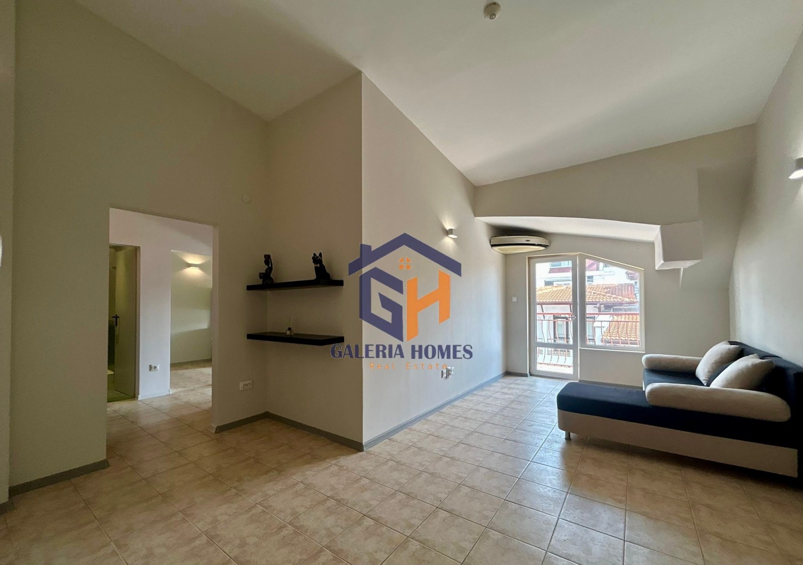 Имотът се състои от: антре, всекидневна, кухненски бокс, две спални, баня с тоалетна и тераса.