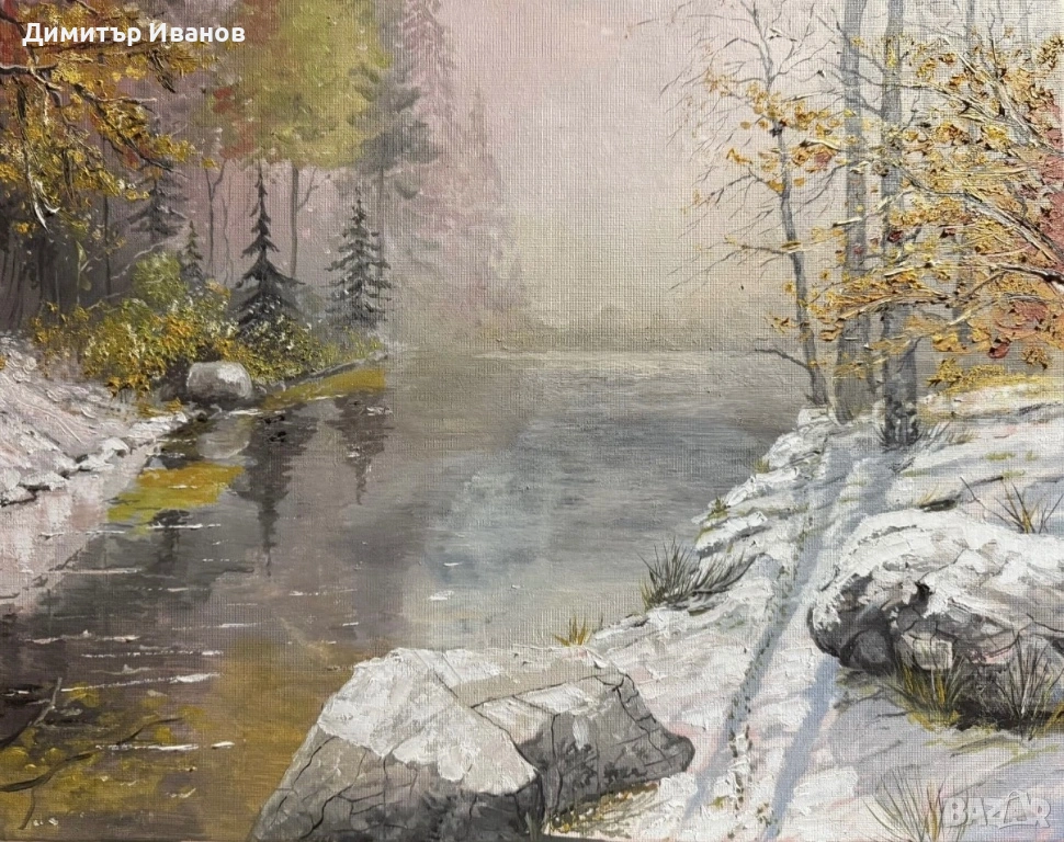 Картина на гора с река зимна → Обява 53873533
