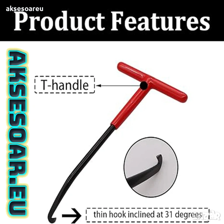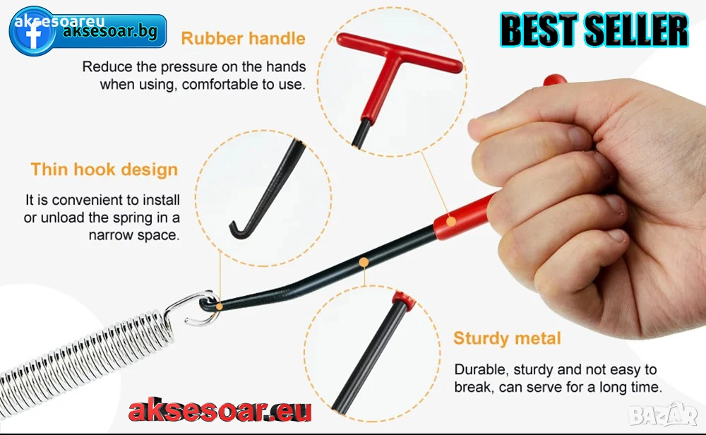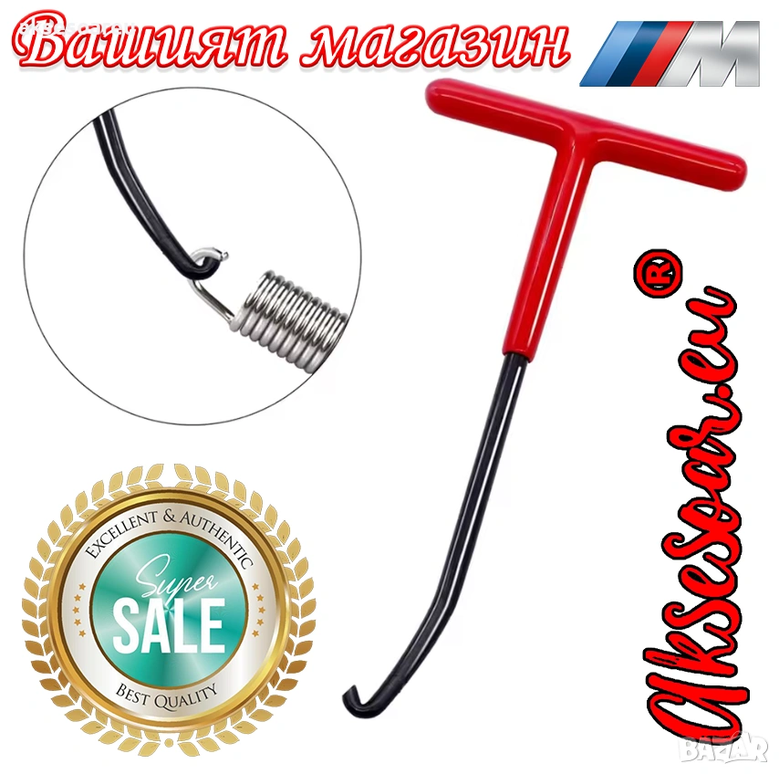 на пружини за ауспух с Т-образна дръжка. Нова удобна кука с гумена дръжка за издърпване на пружини (смяна на ресори накладки и други).