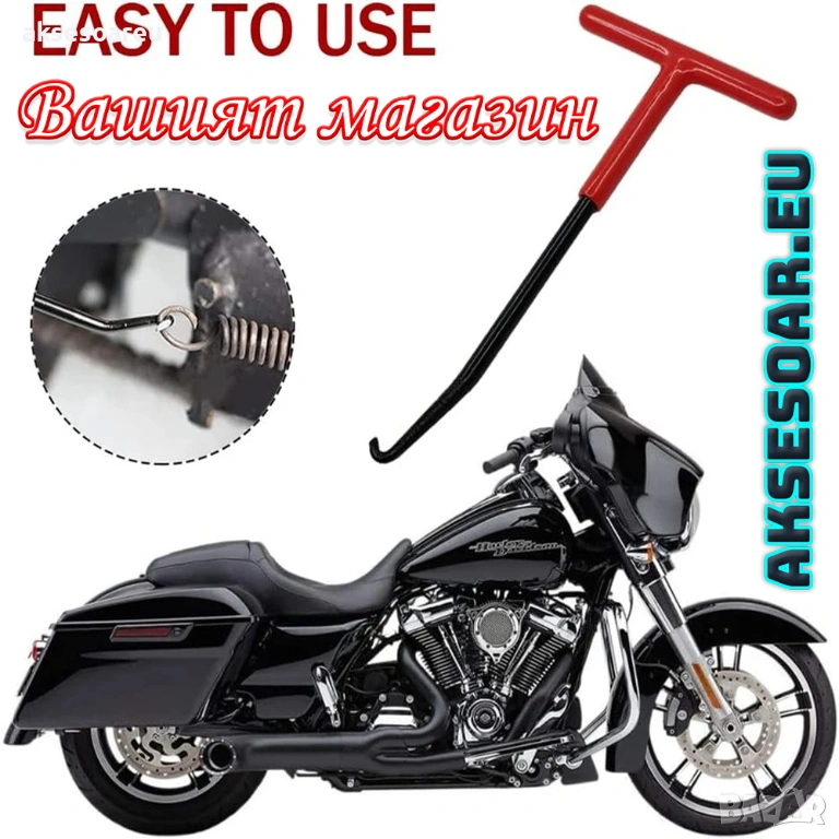 го прави идеален за ремонти и задачи по поддръжка в движение. Удобна навсякъде приложимаТ-образна кука за пружини за мотоциклет, мотопед и велосипед.