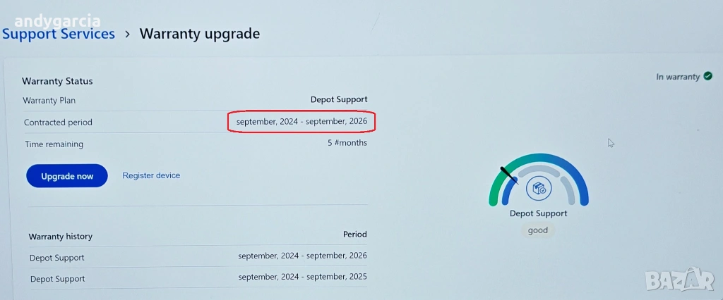 Гаранцията е междунарадна 36 месеца до края на Септември 2026 год. с опция за удължаване.