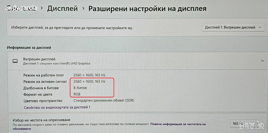 Екран 16-инчов (40.64 см.) - WQXGA 2560 x 1600,165hz, IPS матов
