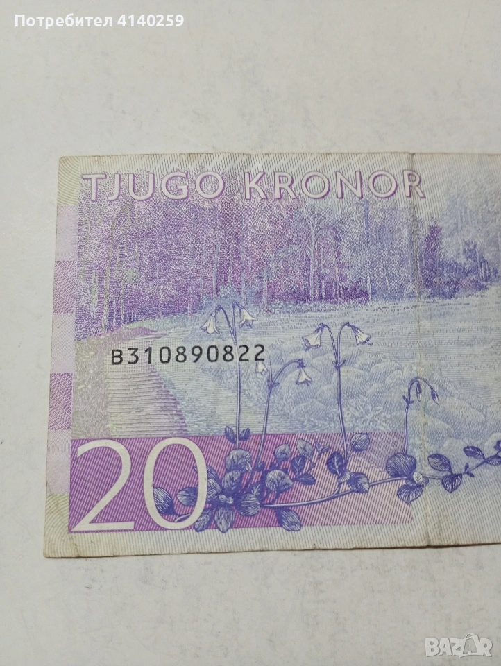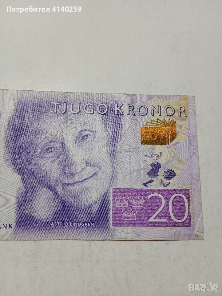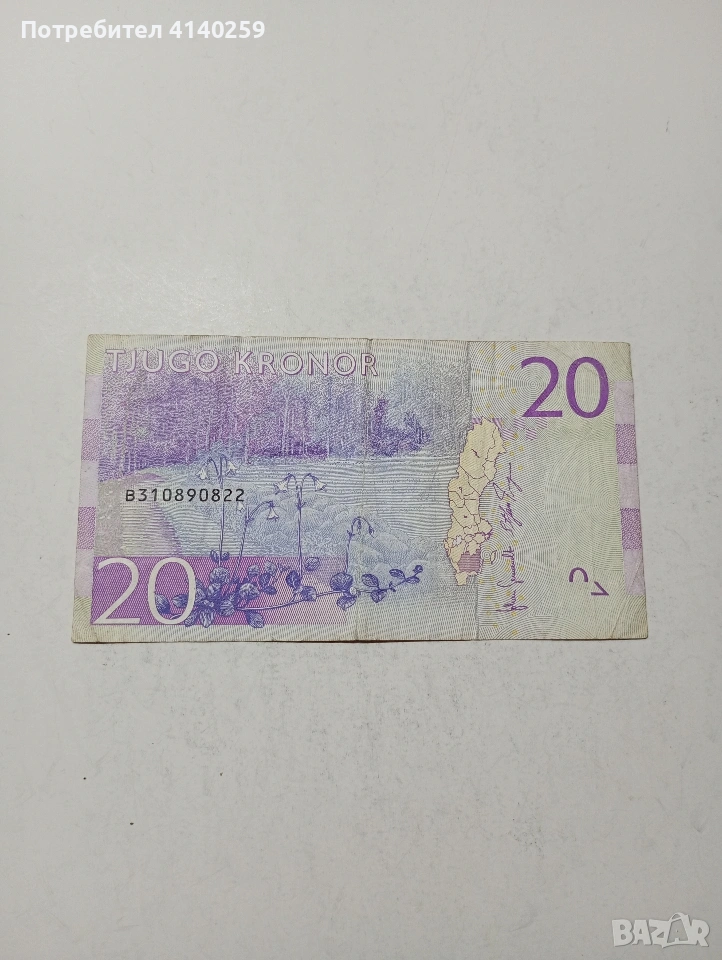 ШВЕЦИЯ БАНКНОТА 20 КРОНИ 2014-2016 Г СЪСТОЯНИЕ ВИДИМО ПОЛУЧАВАТЕ СНИМАНАТА БАНКНОТА РАЗГЛЕДАЙТЕ ДРУГИТЕ МИ ОБЯВИ ДА КОМБИНИРАТЕ ДОСТАВКА ЕКОНТ ЗА ВАРНА ЛИЧНО
