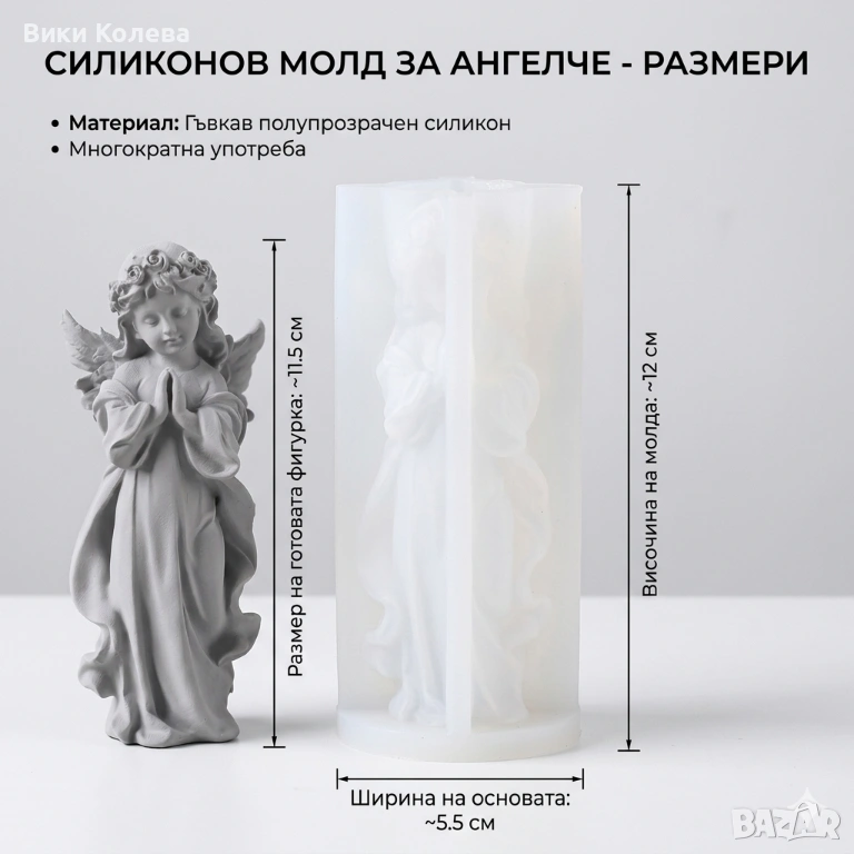 Продавам висококачествен силиконов молд с изключително детайлен дизайн на малко ангелче в молитвена поза. Идеален за творци, които се занимават с изработка на декоративни свещи, ароматни сапуни или фигурки от гипс и епоксидна смола.