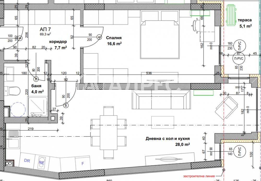 Площ от 77кв.м до 132кв.м.