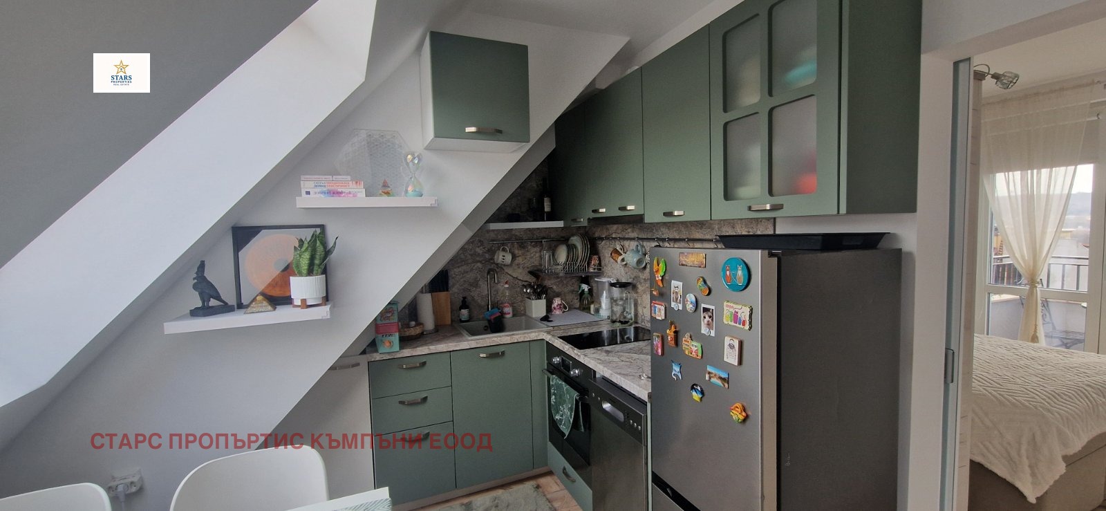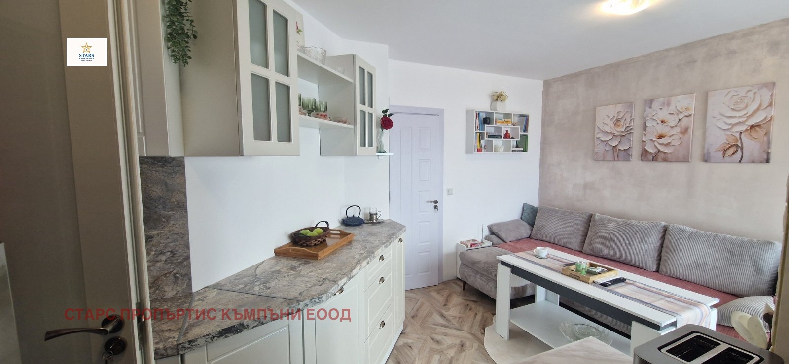 Stars Properties предлага за продажба два двустайни апартамента, обединени в един, напълно обзаведени и готови за нанасяне или отдаване под наем.