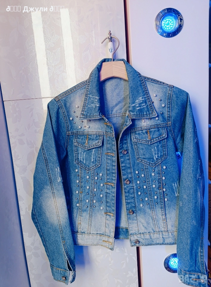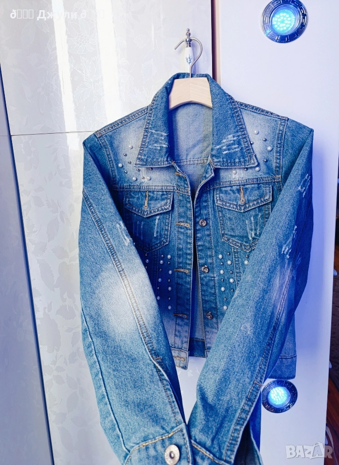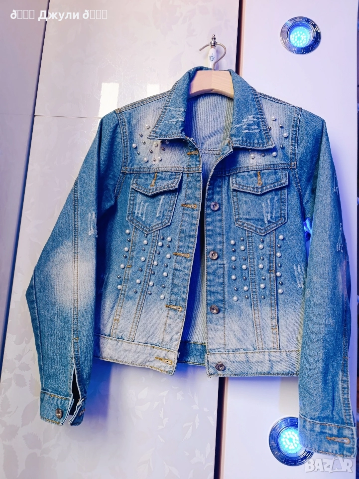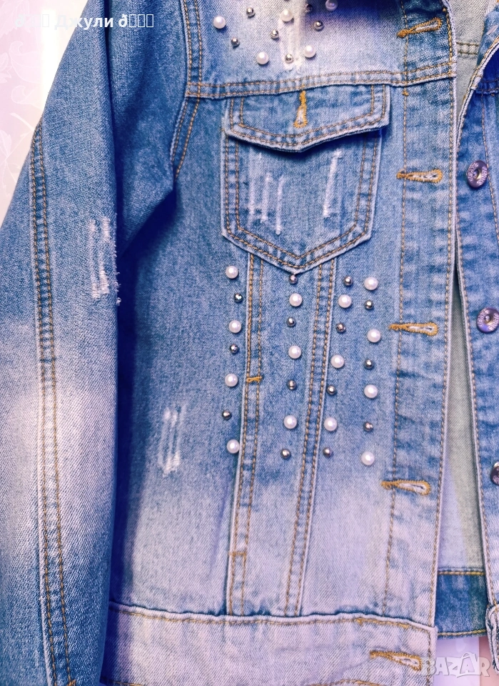 Бутиково дънково яке с перли и камъни → Обява 53874395