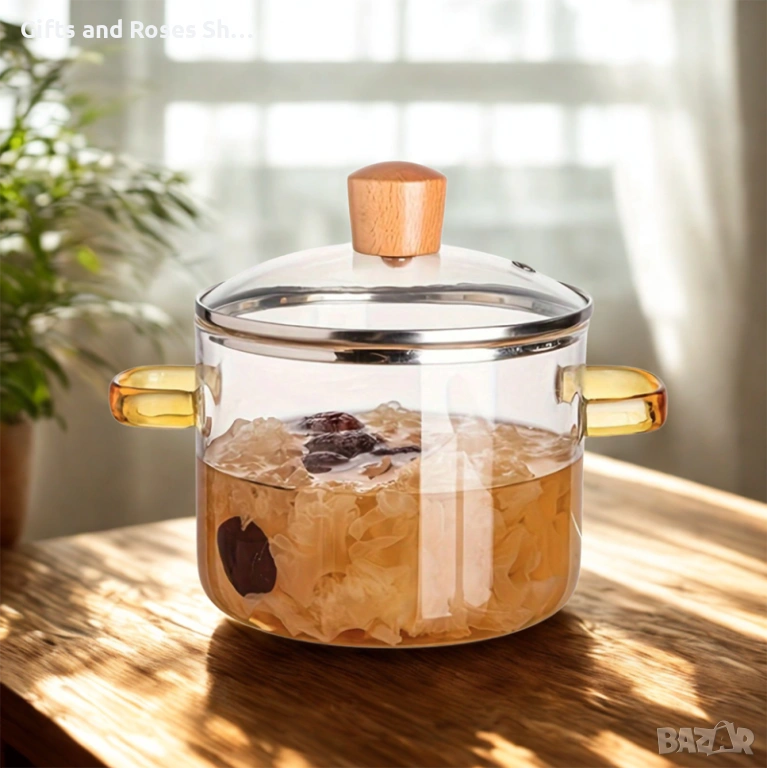 Прозрачен дизайн: Това е красив стъклен съд за готвене, при който лесно наблюдавате процеса на готвене, без да е необходимо да махате капака.