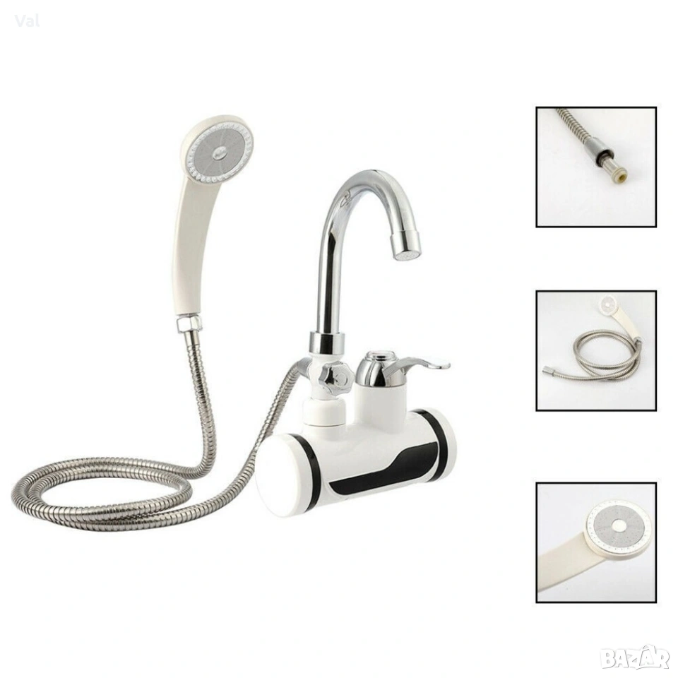 Смесител за вграждане в комплект с душ слушалка с проточен нагревател