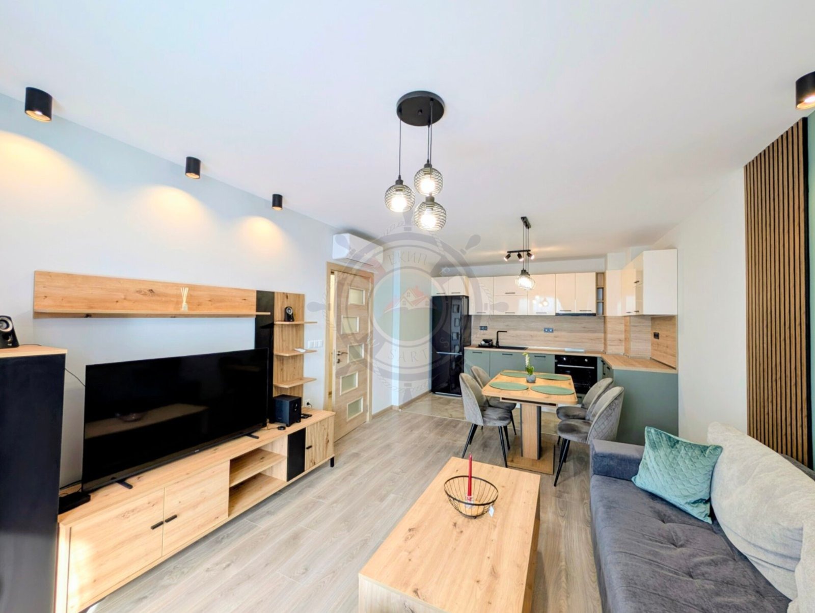 Апартаментът се състои от кухненска част с трапезария и светла всекидневна с площ 25 кв.м, спалня 13,5 кв.м, обща тераса с открита гледка, килер/мокро помещение и комбинирана пералня със сушилня, баня с тоалетна и входно антре. Жилището е модерно, функционално, новообзаведено и оборудвано с нови електроуреди. В кухнята има вградена съдомиялна, печка, котлони, абсорбатор и хладилник. Има поставени климатици в стаите и очаква първите си наематели. Имотът е изцяло среден, покрит и топъл, със западно изложение.