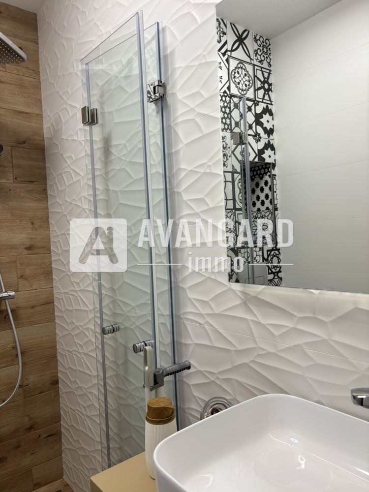Апартаментът е завършен с внимание към всеки детайл ново, елегантно и бутиково обзавеждане, без следи от обитаване. Всичко е подбрано с вкус и усещане за класа, създавайки атмосфера на уют и изисканост.