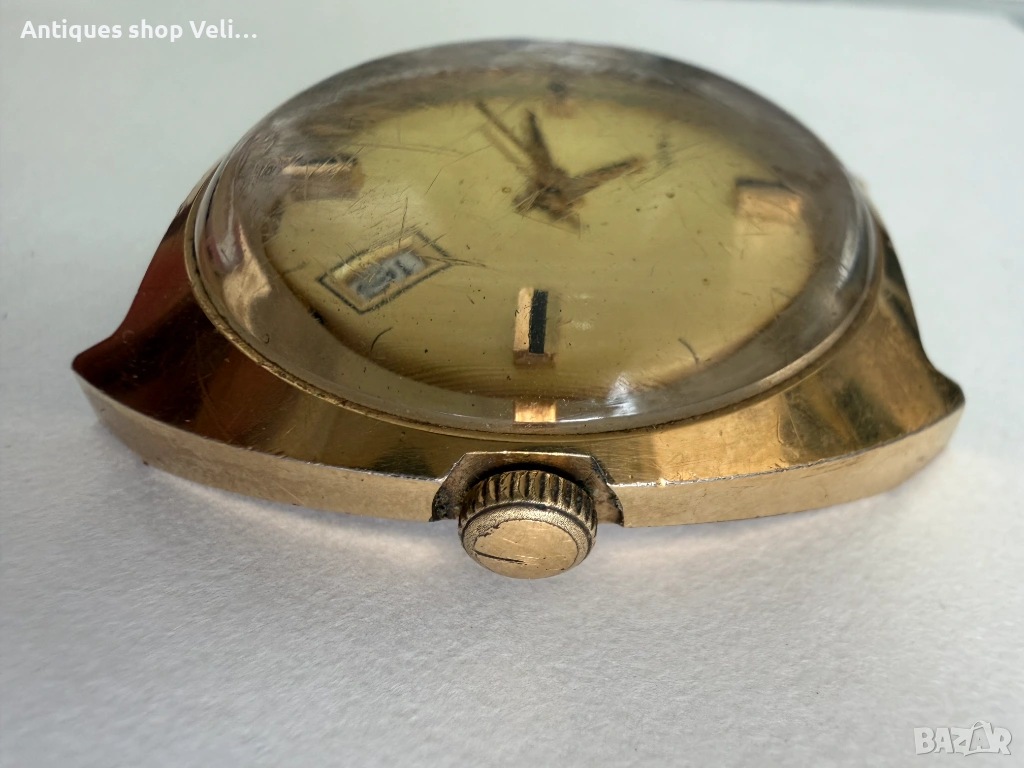 Механичен позлатен мъжки часовник TIMEX. Добро работещо състояние. Предлагаме доставка с Еконт и лично предаване за градовете Велико Търново, Русе и Сливен!