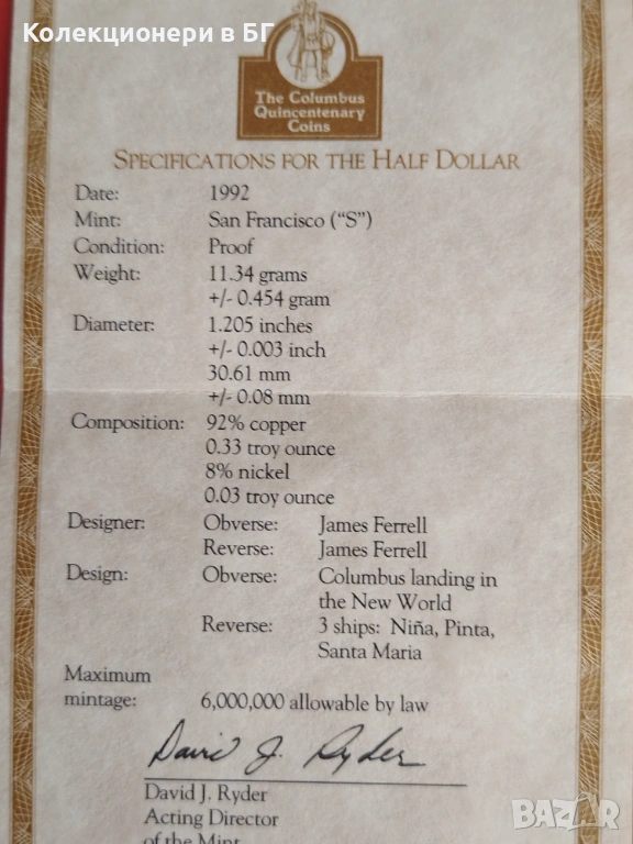 1/2 ДОЛАР 1992 ГОДИНА - САЩ
