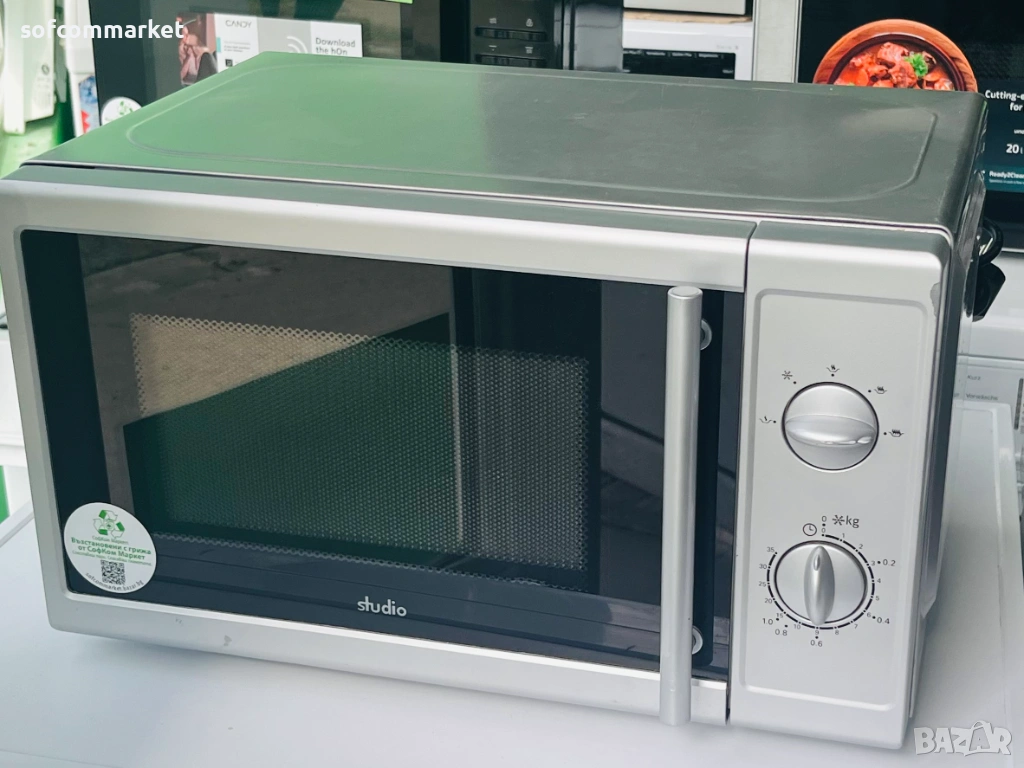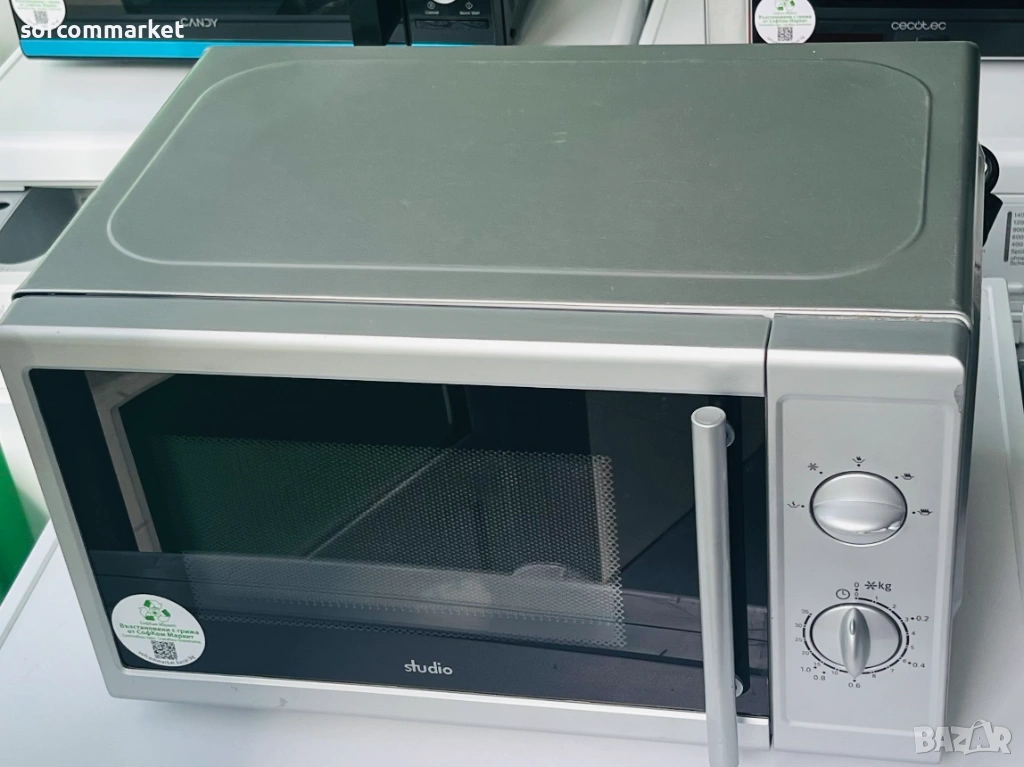 микровълнова фурна Studio (модел MD14028). Уредът е в много добро техническо и визуално състояние. Корпусът е от неръждаема стомана, което я прави здрава и лесна за почистване.