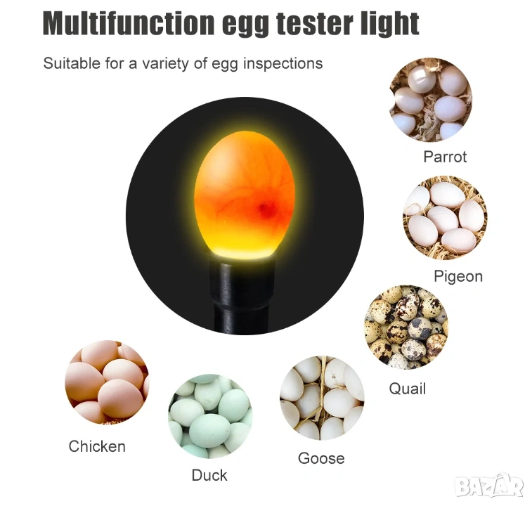 * Подходящо за яйца, патешки яйца, гъши яйца, пъдпъдъчи яйца, птичи яйца и др.