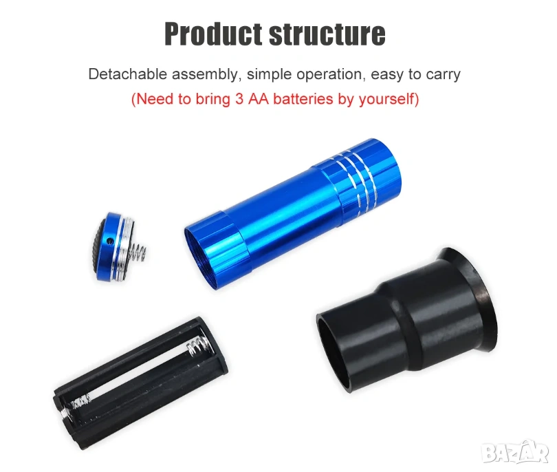 * Използва три AAA батерии, висока издръжливост (не са включени в доставката).