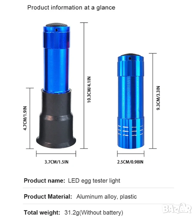 Списък на опаковката: 1 x Устройство за осветление на яйца