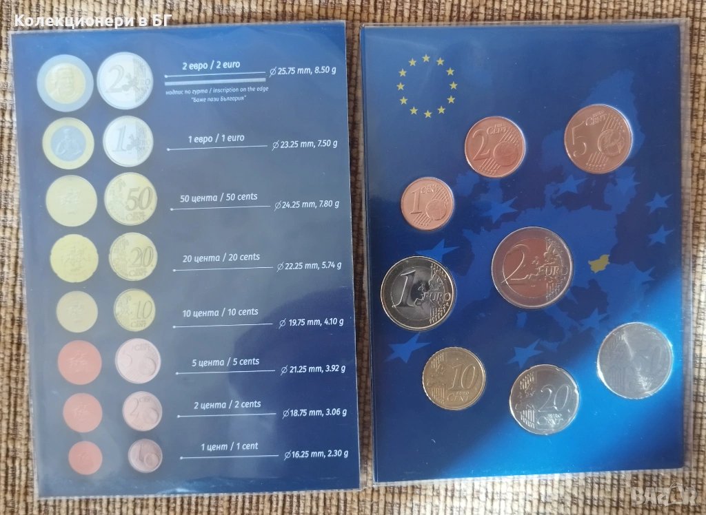 СЕТ С ОСЕМ ЕВРОМОНЕТИ ОТ БЪЛГАРИЯ