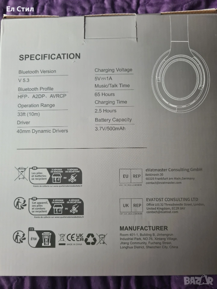 Батерия: До 65 часа време за възпроизвеждане с едно зареждане.