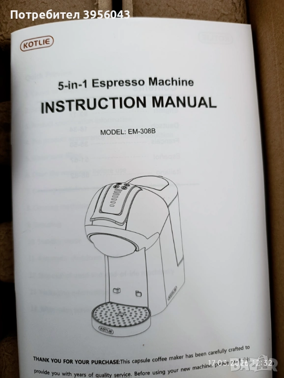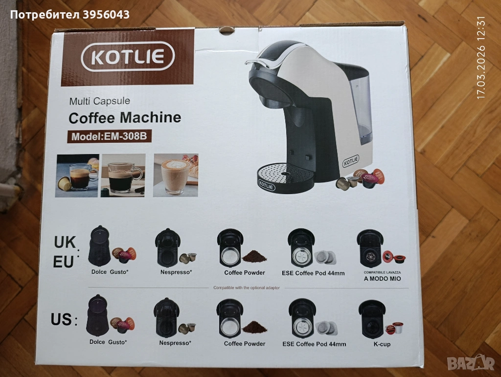 Продавам чисто нова кафе машина KOTLIE 5-в-1, неотваряна, в оригинална фабрична кутия.