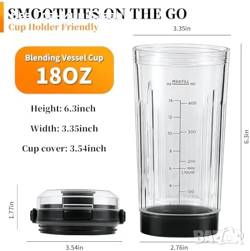 Резервна блендер чаша 18 oz, съвместима с Ninja BC100/BC151