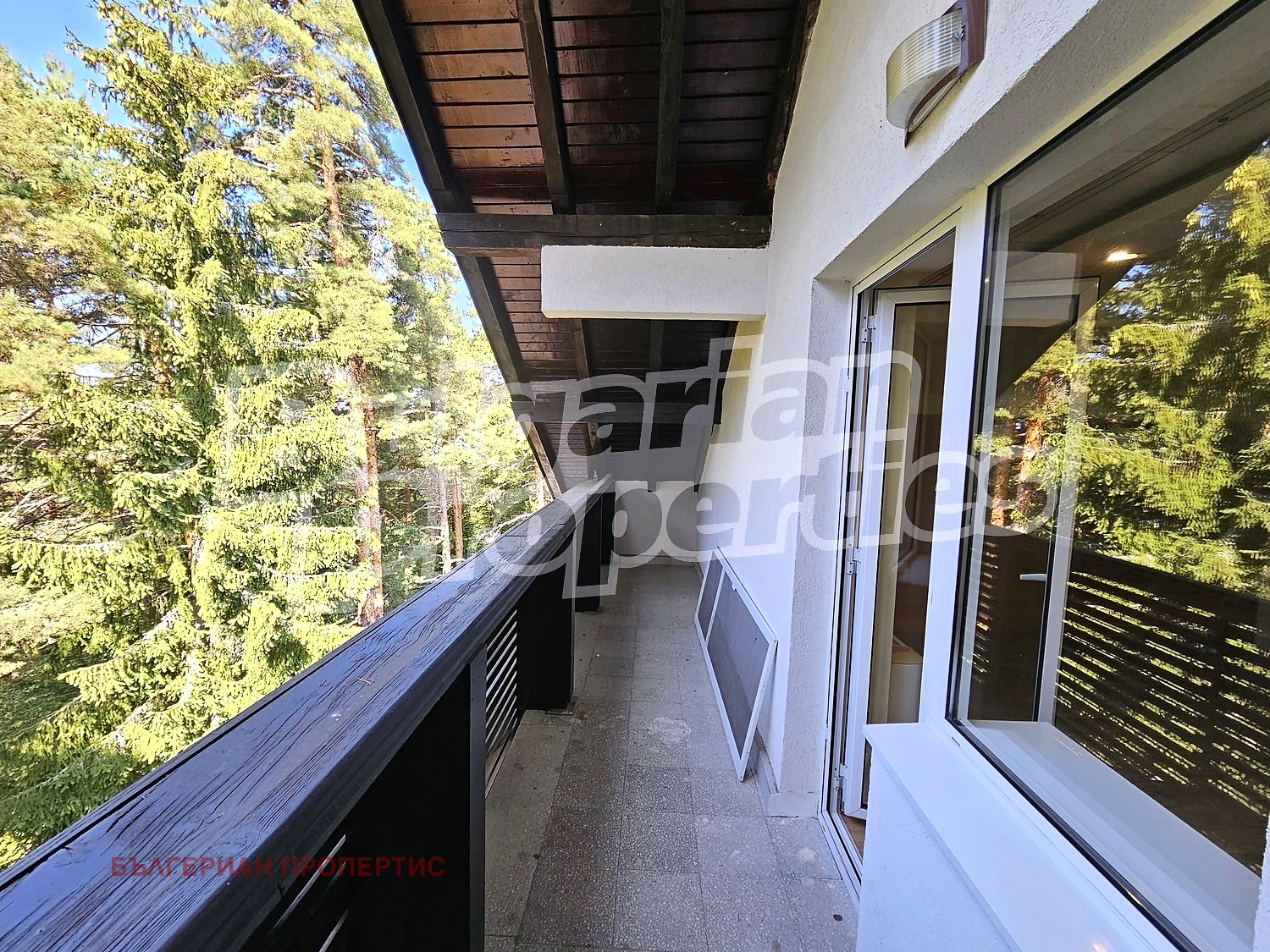 тераса с гледка към борова гора