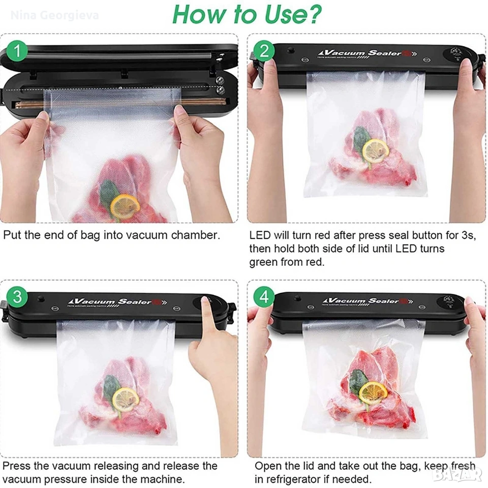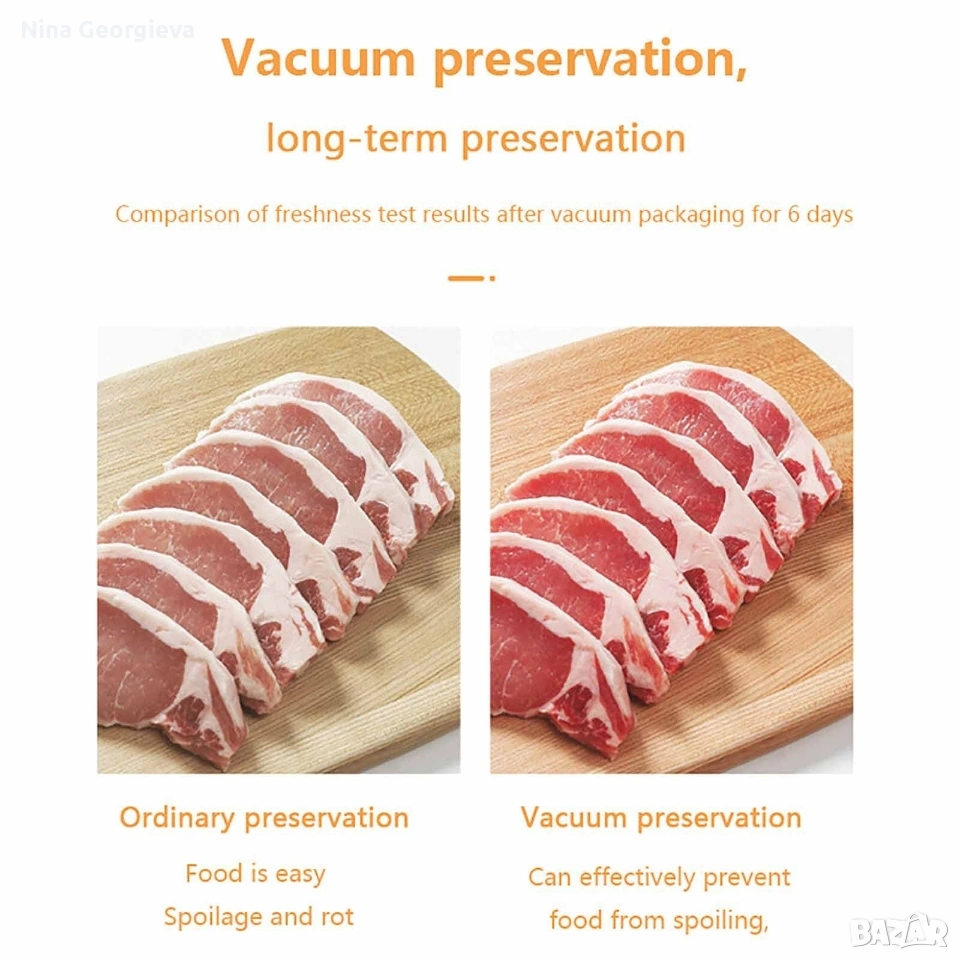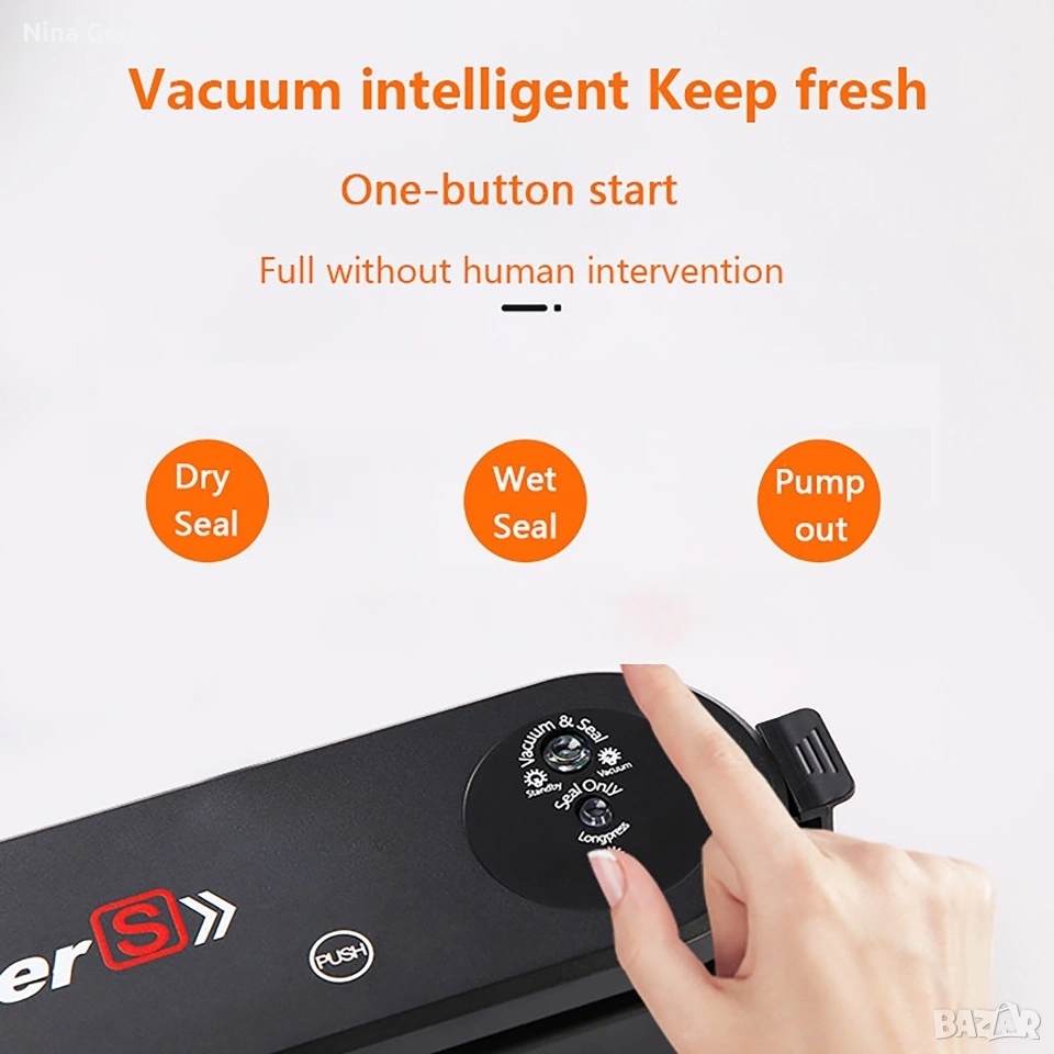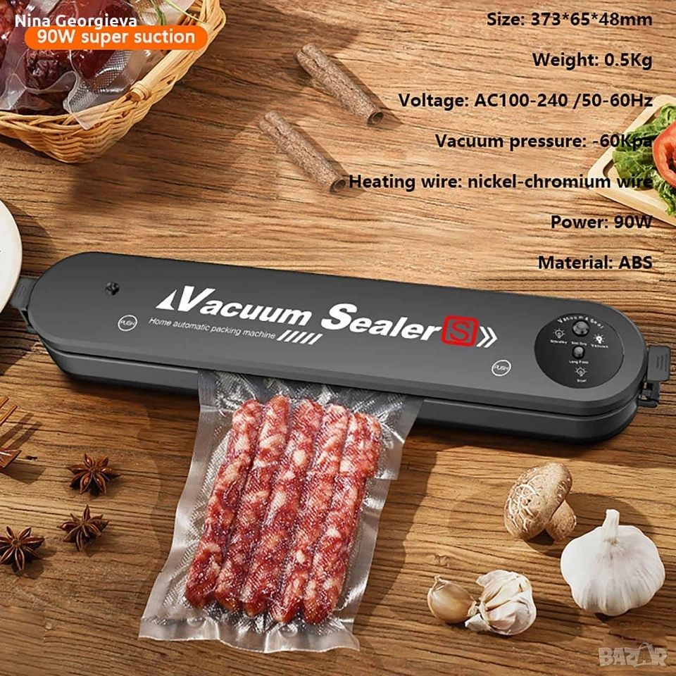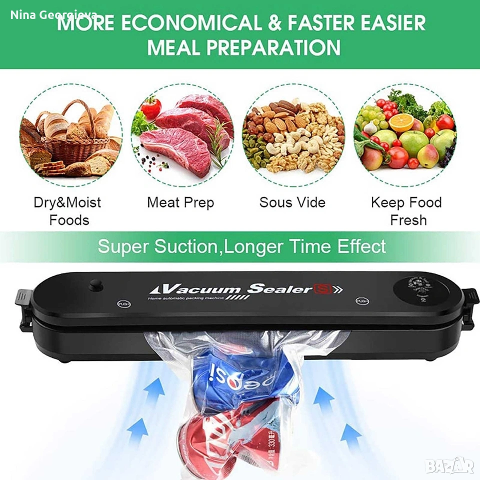 Машина за вакуумиране на опаковки TV159B. Страхотна, гъвкава машинка с която можете лесно да вакуумирате своите опаковки. Ако ви е омръзнало от развалящата се храна или трудното съхранение на всеки един продукт. А може би се чудите, как да ги разделите, тогава определено този продукт е за вас. Вакуумира месото, рибата, зеленчуците, бобовите храни за едно още по-добро съхранение на продуктите. Благодарние на уплътнителя който е изработен от висококачествена ABS пластмаса, с 2 в 1 двоен режим, го прави подходящ за сухи и влажни храни. С тази машинка това се случва много лесно, бързо и гъвкаво. Съхранете храната и продуктите си по най-добрия начин, използвайки това невероятно устройство.