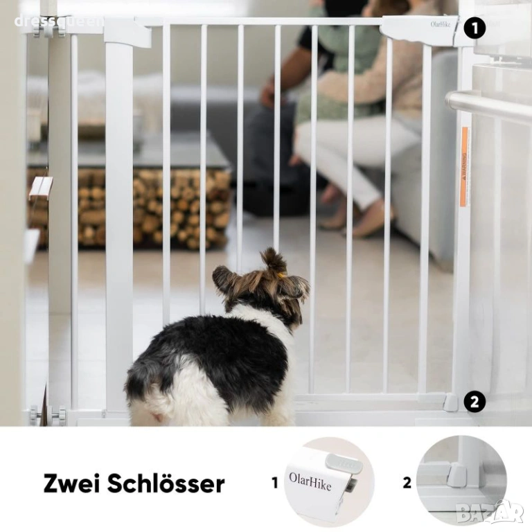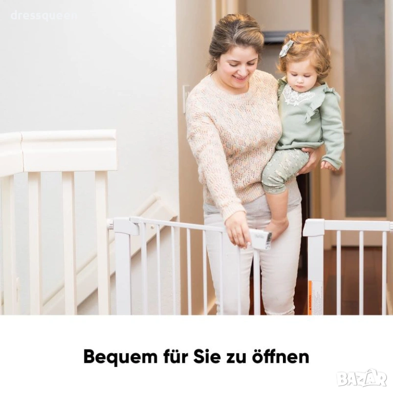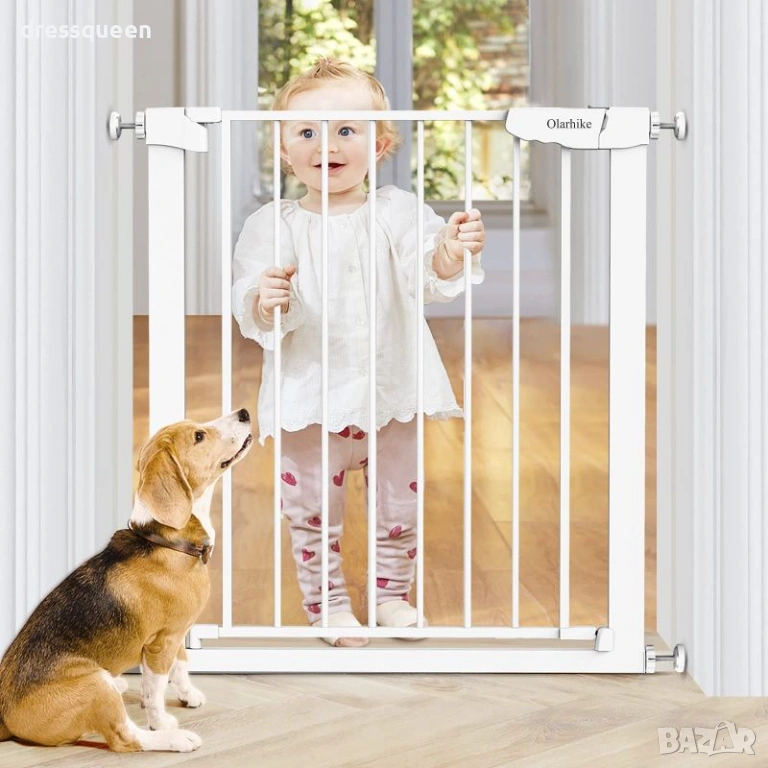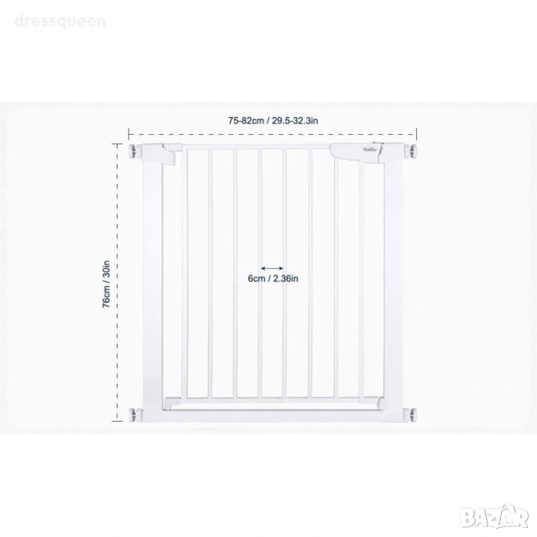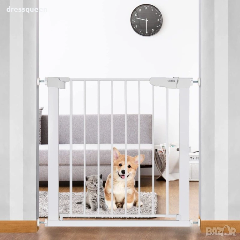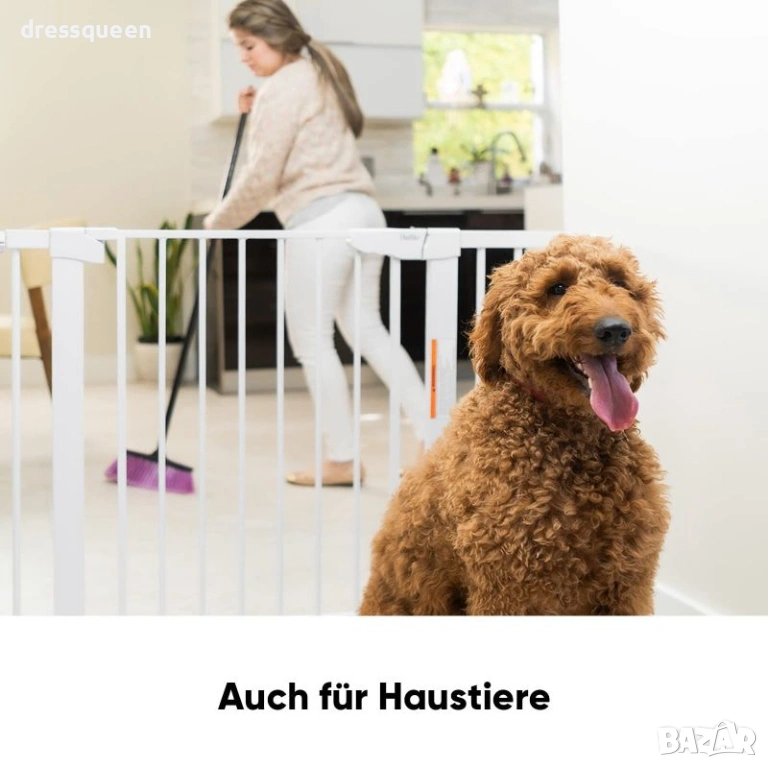 Изработена от здрав метал, преградата е стабилна и може да издържи на натиск от деца или домашни любимци. Допълнителното удобство идва от функцията AutoStop – вратата се затваря автоматично, което прави преминаването бързо, а безопасността – гарантирана. Височината от 76 см е достатъчна, за да предотврати прескачане.