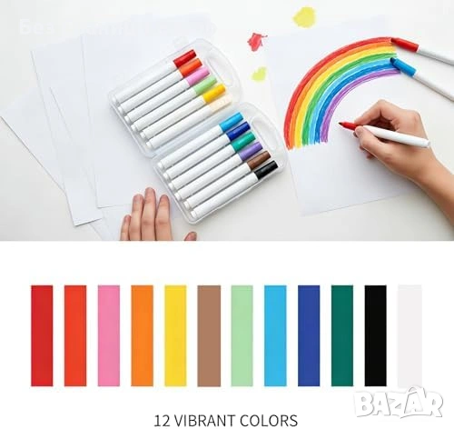 Съдържа цветни маркери, водни писалки, листове с контури и празни листове