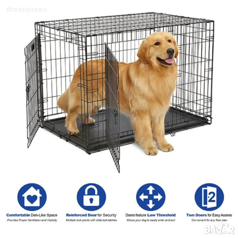 Здрава Метална Клетка (42 инча) за Спокойно Пътуване – Двойно Отваряне