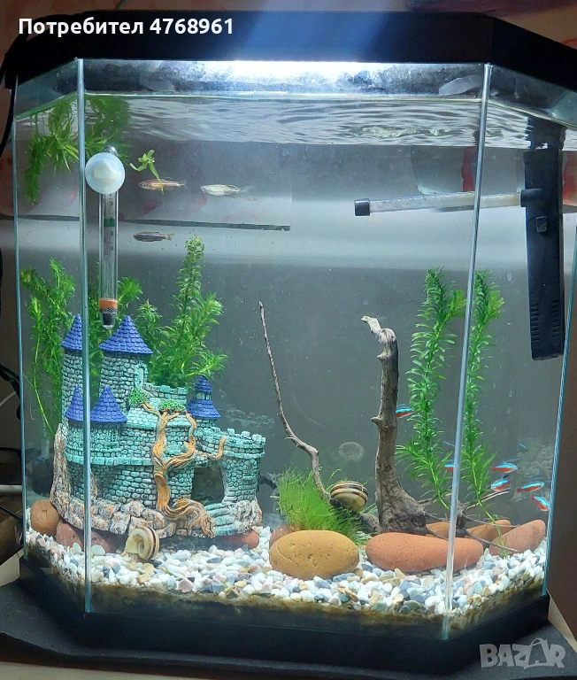 Аквариум 25 л с рибки и охлюви – готов за живеене!
