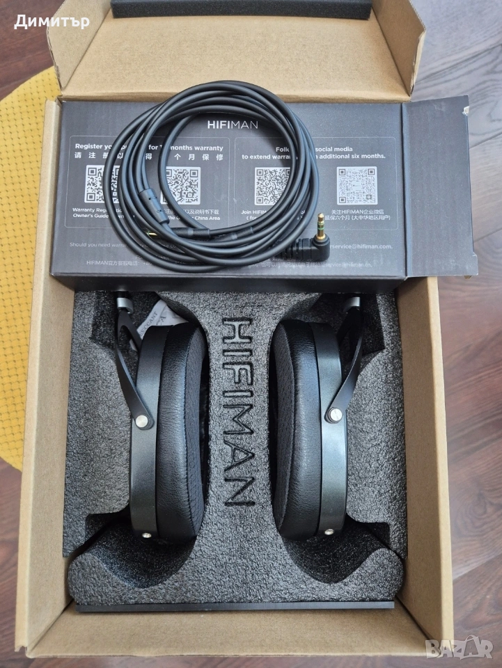 Продавам почти нови high end слушалки Hifiman Ananda Stealth. Слушани са около 30 часа. Нямат следи от употреба. Слушалките са с оригиналната кутия и всички принадлежности. Параметри: Type: open-back, over-ear Transducer: planar magnetic nanometric NsD (Neo supernano Diaphragm) Stealth Magnet system Impedance: 16 ohms Sensitivity: 93 dB @ 1kHz / 1mW Frequency response: 8–55,000Hz Headphone stand included 3.5mm mini-jack cable (angled, 1.5m) + 6.35mm jack adapter Weight: 398g