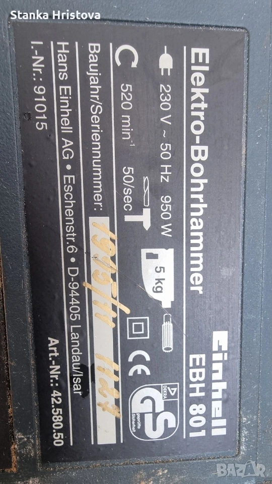 Продавам Работещ Перфоратор Einhell EBN 950w. Внос от Германия.