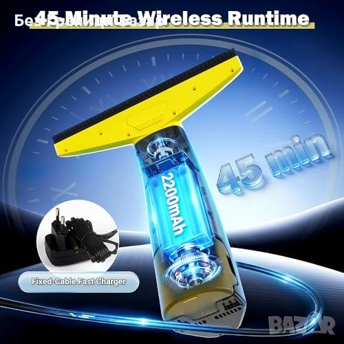 Безжичен уред за почистване на прозорци с мощност на засмукване 2 kPa