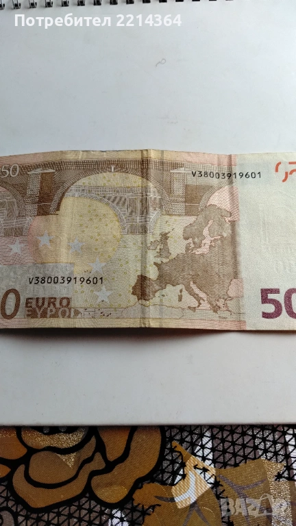 Банкнота 50 Евро от първата емисия от 2002 г. → Обява 53876657