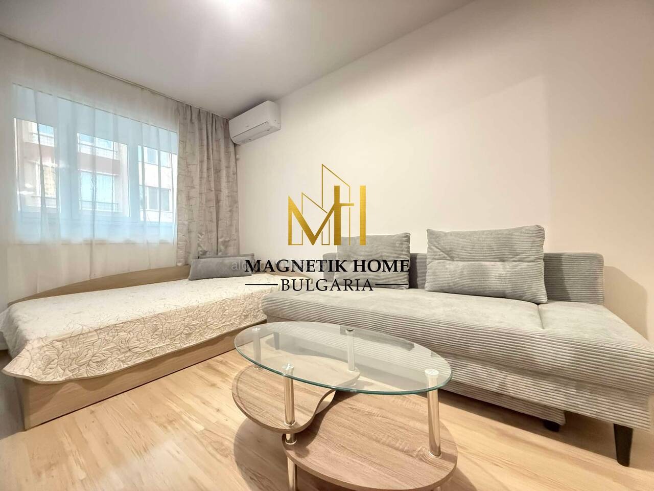 Апартаметът е оборудван изцяло до най - малкият детайл като в допълнение се предлагат чисто нов инвенторен климатик Gree , високо - качествени електроуреди, цялостна кухненска посуда, спално бельо и т.н.