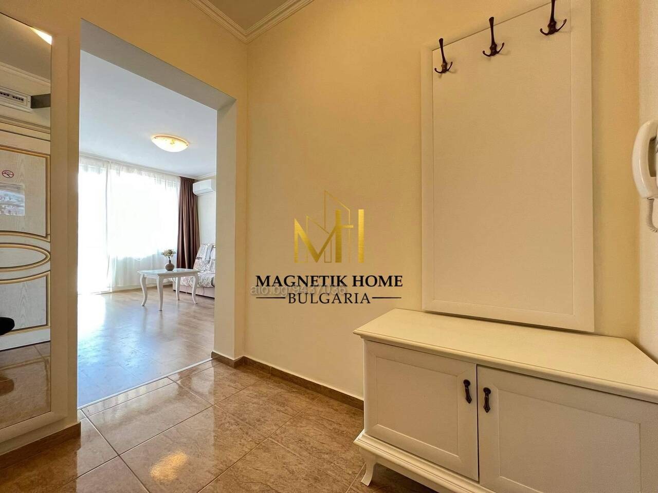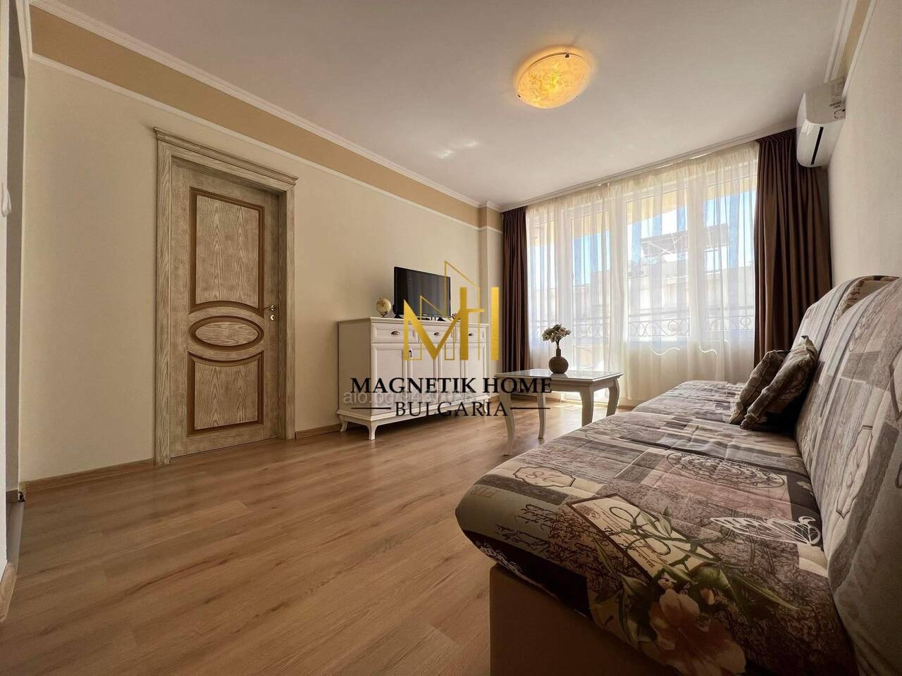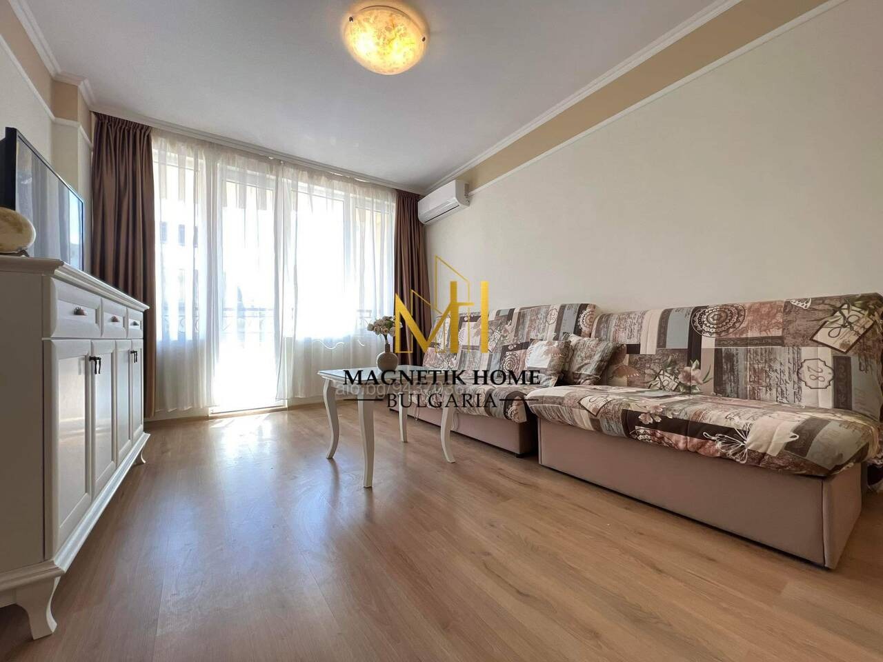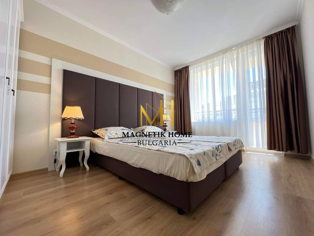 Драги наематели, Ние от агенция за недвижими имоти Magnetik Home имаме огромното удоволствие да ви зарадваме с тази неустоима оферта, а именно уникален двустаен апартамент с гледка море в затворен комплекс със спа Flora Beach , Pomorie.