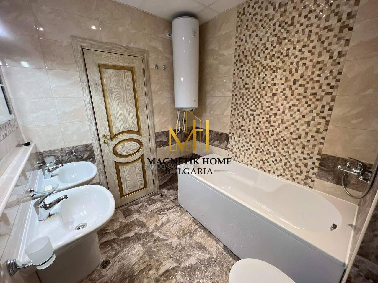 Разпределението на имота се разгръща както следва: входно антре, голяма баня с вана, биде, две мивки и тоалетна, голямо спално помещение, просторен хол + отделена Г образна кухня и голяма открита тераса.